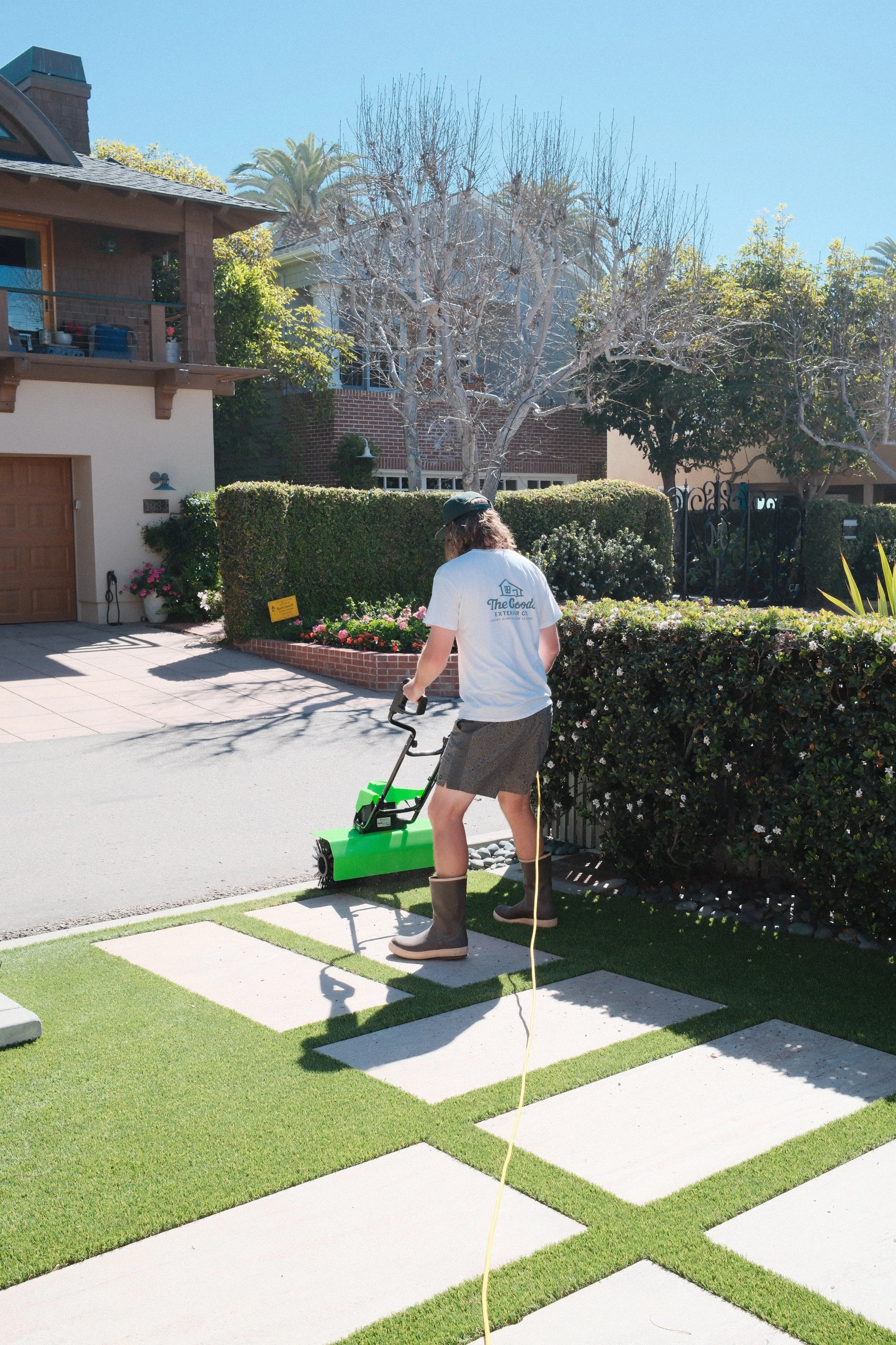 We bring your artificial turf back to life with expert cleaning and care. Over time, turf can trap dust, debris, pet odors, and bacteria—dulling its appearance and shortening its lifespan. Our team uses specialized equipment and eco-friendly cleaning solutions to deep clean, sanitize, and deodorize your turf, leaving it looking fresh, vibrant, and safe for the whole family (pets included!). Whether it’s routine maintenance or a one-time refresh, our turf cleaning service helps protect your investment and enhance curb appeal.